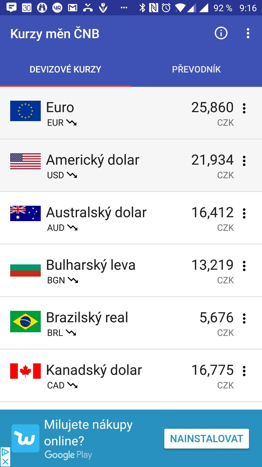 Program je k dispozici zdarma, obsahuje však permanentně viditelný reklamní proužek, kterého se můžete zbavit za 50 Kč. Po třech letech v Obchodě Play má Česká koruna více než deset tisíc stažení a solidní průměrnou známku 4,4. Jen 3 MB velký balíček můžete instalovat na telefony a tablety s Androidem 4.0 a vyšším.