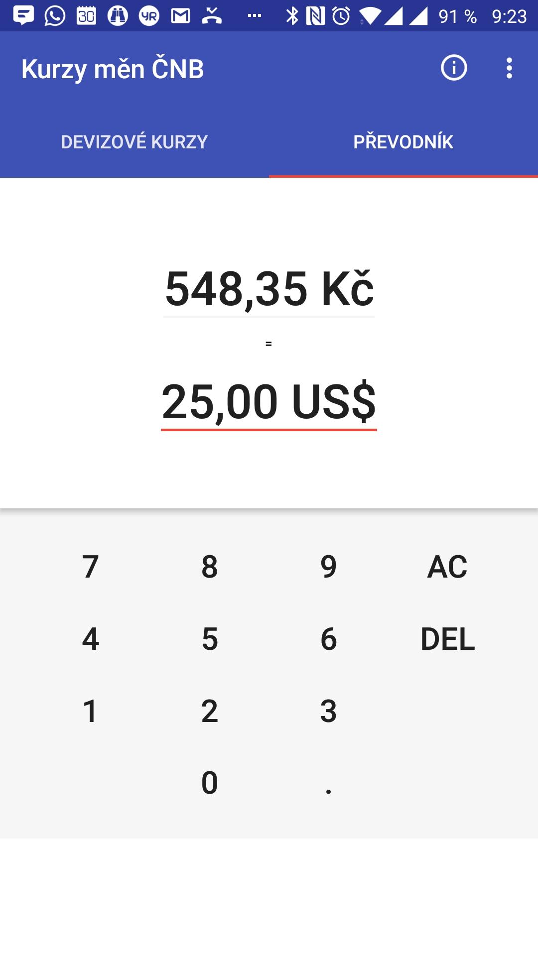Sekce Převodník funguje jako tradiční měnová kalkulačka, do které zadáte částku v jedné měně a ona ji automaticky přepočítá na české koruny. Cizí měnu je přitom nutné vybrat v sekci Devizové kurzy přes kontextovou nabídku. Pak stačí zadat hodnotu v cizí měně a okamžitě na obrazovce uvidíte, kolik je to „na naše“.