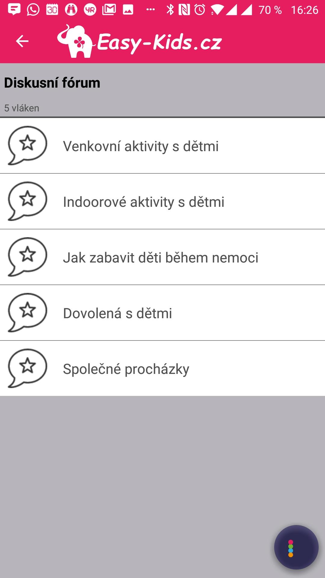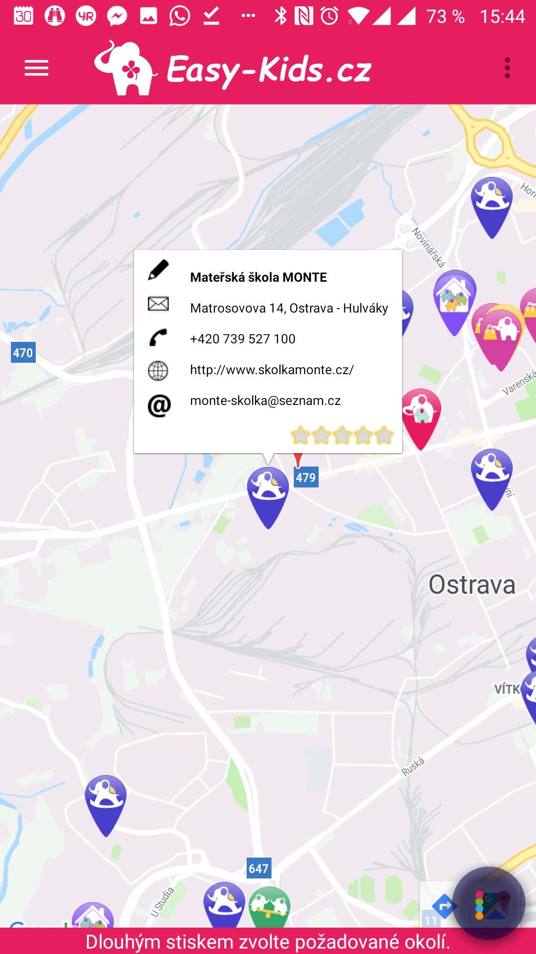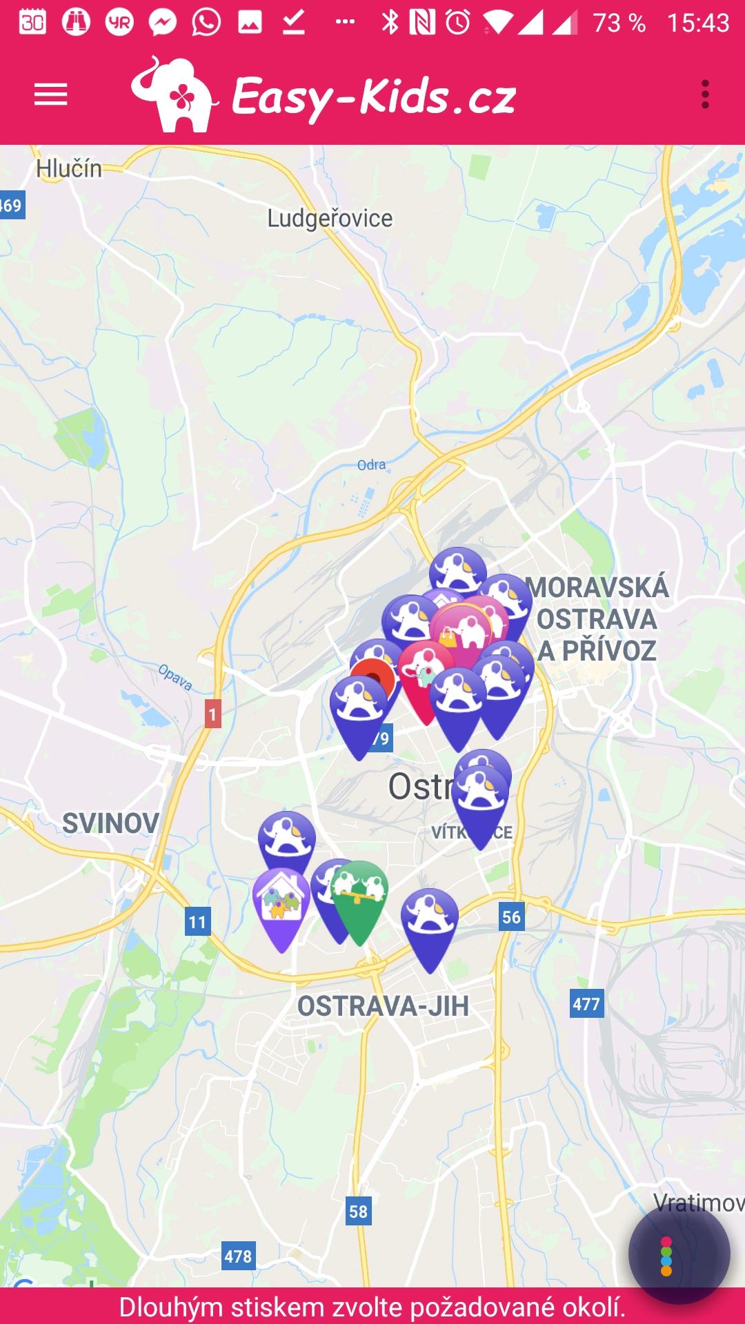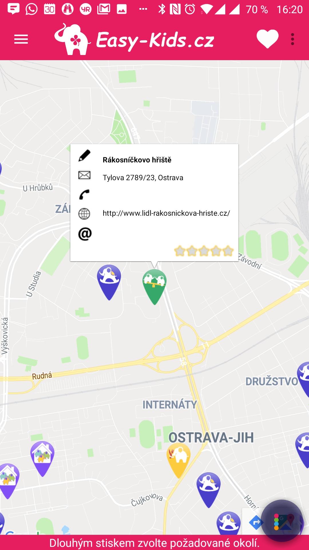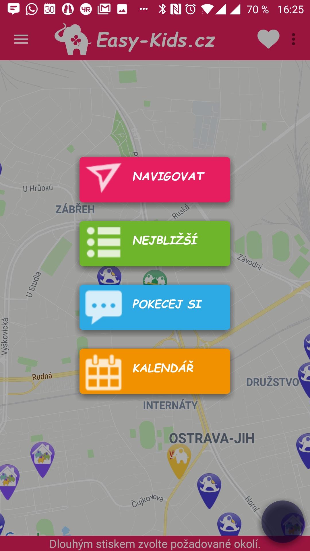 V plovoucí kontextové nabídce najdete výpis nejbližších míst ve formě seznamu, možnost debatovat v diskuzních fórech s ostatními rodiči, zcela jasný nám však nebyl význam tlačítka s kalendářem, které v Ostravě zobrazovalo prázdnou stránku.