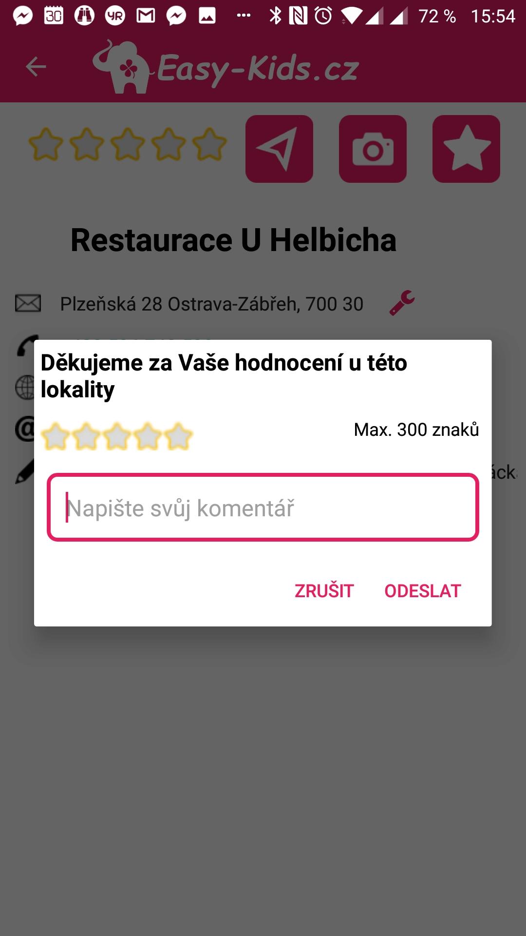 Pokud se zaregistrujete, budete moci přidávat fotky a hodnocení. Registrační formulář naštěstí nevyžaduje kromě e-mailu, uživatelského jména a hesla žádné nestandardní údaje. Po klepnutí na hvězdičku pak můžete hodnotit místo jednou až pěti hvězdičkami a krátkým komentářem. Kromě toho lze přes tlačítko s fotoaparátem odeslat jeho fotky.