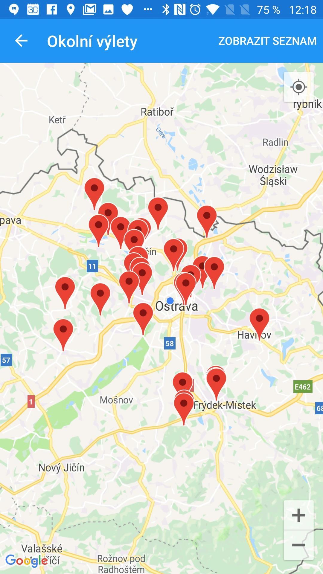 Program nevyžaduje po prvním spuštění žádná zvláštní oprávnění ani registraci, takže se rovnýma nohama ocitnete v základní nabídce, čítající šest položek. První Výlety v okolí zobrazí v mapových podkladech Google „špendlíky“ s tipy na výlety. Kromě mapy lze využít také výpis v podobě seznamu, kde jsou uvedeny základní parametry, jako je vzdálenost, obtížnost a předpokládaná doba trvání.
